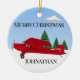 Roter Single-Motor-Flugzeug Weihnachtsschmuck. Flugzeug zeichnend von Claudine Boerner mit bäumtem CC0-Foto. Copyright (c) 2020 Claudine Boerner, Corel Corporation und ihre Lizenzgeber. Alle Rechte vorbehalten.