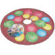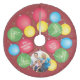 Dieser Weihnachtsbaumrock zeigt eine Collage von bunten, runden Weihnachtsbaumschmuck. Ein großes Ornament unten ist ein individuelles Foto für Ihr Lieblings-Foto. Benutzerdefinierter Text auf zwei anderen Ornamenten erlauben es Ihnen, Familiennamen hinzuzufügen. Alle grünen Ornamente enthalten Text, der lautet: Ein sehr frohe Weihnachten. Der Hintergrund dieses Rocks ist dunkelrot und die Zierfarben rot, grün, blau und gelb. Der ganze Rock ist mit kleinen limiengrünen Wirbel bestrichen.