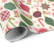 Weihnachtsschmuck verstreut auf einem cremig-farbenen Hintergrund.