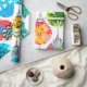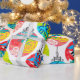 Farbenfrohe Weihnachtsschmuck in lebhaften Farben verpackt Papier.