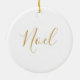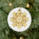 Die Weihnachtsschmuck dieser Keramik wird hier mit einem festlichen Urlaubssschneeflottprint gezeigt. Die Rückseite sagt Weihnachten in Gold. Passen Sie dieses Objekt an oder kaufen Sie, wie es ist. Bild
