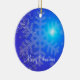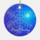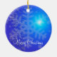 Weihnachtsschmuck im Freien mit Bild von Schneeflocken auf blauem Hintergrund und anpassbarem Text.