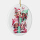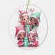 Diese Keramik ist Weihnachtsschmuck in runder Form mit weißem Hintergrund und festlichem Elfenprint zu sehen. Passen Sie dieses Objekt an oder kaufen Sie, wie es ist.