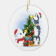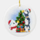 Diese Keramik ist Weihnachtsschmuck in runder Form mit weißem Hintergrund und festlichem Urlaubsturnier auf Eisbär und Pinguinen gedruckt. Passen Sie dieses Objekt an oder kaufen Sie, wie es ist.