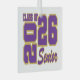 Dieses Glasschmuck wird in einer quadratischen Größe mit einem lustigen Druck gezeigt, den Sie Ihren Klassenfarben anpassen können. Weiß, königlich lila und goldfarben. Passen Sie dieses Element mit dieser Vorlage an oder kaufen Sie es wie gezeigt.