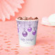 Dieses hübsche Papier-Tasse-Design hat ein Muster hängender Weihnachtsschmuck in Violetttönen lila. Der Hintergrund ist ein subtiler Farbverlauf von stilisierten Weihnachtsbäumen. Suchen Sie ID251, um weitere Farboptionen und zusätzliche Produkte mit diesem Design zu sehen.