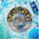 Eine zarte Glasverzierung reflektiert eine schneebedeckte Waldszene, umgeben von immergrünen Ästen und warmen, leuchtenden Lichtern