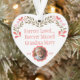 Ehre die Erinnerung an einen geliebten Menschen mit diesem eleganten Acryldenkmal Weihnachtsschmuck mit einem individuellen Foto. Dieses herzförmige Ornament ist aus haltbarem Acryl gefertigt und mit einem wunderschönen Blumendesign verziert, das Liebe und Erinnerung symbolisiert und zu einer einzigartigen und dauerhaften Hommage macht. Das Gedenkschmuck mit Bildern kann mit einem hochgeliebten Bild personalisiert werden, das es von einer einfachen Dekoration in ein Foto-Ornament verwandelt, das wertvolle Erinnerungen lebendig behalte. Als personalisiertes Denkmal ist es für diejenigen gedacht, die gewollt haben, zu feiern und sich an das Leben derer zu erinnern, die sie vermissen, besonders während der Ferienzeit. Dieses Acryldenkmal-Weihnachtsschmuck vereint Schönheit und Vielseitigkeit und passt nahtlos zu jeder Feriendekoration. Ob Sie Gedenkschmuck suchen, der für Ihren Baum personalisiert ist, oder ein Weihnachtsdenkmal als herzliches Geschenk, dieses Stück bietet eine sinnvolle Erinnerung von Liebe und Erinnerung. Ideal für Familien, die ein Weihnachtsschmuck nach Maß suchen, oder für alle, die ein Weihnachtsdenkmal mit persönlicher Touch suchen, ist dieses Stück eine schöne Ergänzung zu jeder Sammlung von Weihnachtsschmuck. Mit diesem Acryldenkmal-Ornament lassen Sie Wärme und Stimmung in den Urlaub - eine herzliche Erinnerung, Ehre und nahe Erinnerung an die Lieben