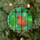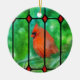 In den schönsten Ferienfarben zeigt dieses Ornament einen prächtigen, roten Kardinal, der vor einem Buntglasfenster sitzt.