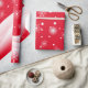 Weihnachts-Wrapping Paper mit Weihnachtsschneeberg und weißen Schneeflocken auf rotem Hintergrund. Frohe Frohe Weihnachten und Neujahr schöne Wrapping Paper für schöne Weihnachtsgeschenke. XMAS Wrapping Paper verziert mit Weihnachtsmagischen Symbolen, Winterschneeflocken, Geschenkideen, Schneemann, Weihnachtsbaum, Weihnachtsball, Schneeflocken und festlichen Figuren. Originelles trendiges Grafikdesign.