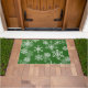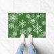 Doormat mit einer grünen Hintergrundfarbe und einem festlichen Weihnachtsschneeflocken-Druck. Passen Sie diese Matte an oder kaufen Sie, wie es ist.