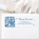 Weiße und silberne Schneeflocken fallen in dieser winterlichen Weihnachtswunder-Aquarellfarbe auf einen hellblauen Himmel, die für ein schönes Rücksendeetikett sorgt. Es gibt einen schneebedeckten Abend. Das Label hat ein blaues Skript "Frohe Weihnachten", das alle bearbeitet werden kann. Vergewissern Sie sich, dass Sie den Namen und die Adresse der Einträge zu denen ändern, die Sie beabsichtigen.