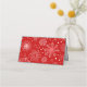 Diese gefaltete Platzkarte wird in Grundweiß mit einem festlichen Schneeflottdruck in Weihnachtsrot und Weiß dargestellt. Passen Sie dieses Objekt an oder kaufen Sie, wie es ist. Stock Image freepik.com all-free-download.com
