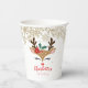 Weihnachts-Rentiermädchen Geburtstagsfeier mit niedlichem Rentiergesicht und Glitzer-Schneeflocken.