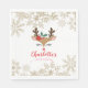 Weihnachts-Rentiermädchen Geburtstagsnapkins mit niedlichem Rentiergesicht und Glitzer-Schneeflocken.