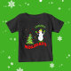 Niedlicher weißer Schneemann mit grünem Weihnachtsbaum und Text Glückliche Feiertage