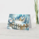 Ein fröhlicher Schneemann steht neben einem Holzzaun, Set in einer schneebedeckten Landschaft mit gemütlichen Hütten, die warmes Licht ausstrahlen. Alle Texte können geändert werden.