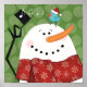 © Veronique Charron / Wilder Apple. Dieses Bild zeigt einen Weihnachtsschneemann mit einem grünen Schal. Er schnippelt einen blauen Vogel, der einen Hut aus dem Weihnachtsmann trägt.