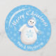 Passen Sie die bezaubernde Weihnachtskarte des Schneemanns mit individuellen Namen auf Vorder- und Rückseite an. Eine wunderbare Art, ein Bündel von Liebe und Schlägern mit denkwürdigen frohen Weihnachten Wünschen an diejenigen, die in Ihrer Welt sind. Personalisieren Sie die Vorlage. Der Urlaubssnowmann mit blauen Fingern, Kappe und Schal sitzt auf einem blauen Himmel voller hübscher Schneeflocken.