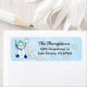 Weihnachts-Schneemann werfen Schneeball blau Schneeflocke Background Weihnachtskarten Rücksendeadressen-Aufkleber.