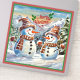 Frohe Weihnachten von den festlichen Urlaubsschneemännern an einem kalten Wintertag.
