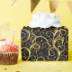 Urlaubskleidpapier mit einem extravaganten hübschen goldenen Wirbel auf schwarzem Hintergrund. Wählen Sie Ihre Hintergrundfarbe.