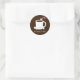 Weihnachts-Aufkleber für ein Weihnachts-Hot-Chocolate-Party. Diese Aufkleber zeichnen sich durch eine lächelnde Tasse heißen Kakaos mit einem Bonbons und einigen fröhlichen Marshmallows auf braunem Hintergrund aus. Alle Wörter können angepasst werden. Weihnachtsschokolade Heiße Kakao Klassischer Rundsticker Sweetsham Food Art Party | ©Melissa Patton - Künstler/Illustrator