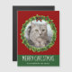 Schöner, individueller Lieblingsmagnet mit einem grünen Urlaubskreath mit einem weißen Text in rotem Hintergrund. Ersetzen Sie das Foto Ihrer Katze in der Mitte des Kranzes oder fügen Sie ein Kätzchenbild für Ihre Freunde und Familie hinzu. Frohe Weihnachten ist in Weiß geschrieben.