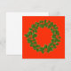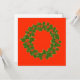 Common Holly Kranz Design - Kranz auf rotem Hintergrund. Ilex aquifolium, die heilige, gemeinsame heilige, englische Heilige, europäische Heilige, oder gelegentlich Weihnachten Heilige, ist eine Art blühender Pflanze in der Familie Aquifoliaceae. Dekoratives, festliches Design.
