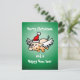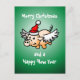 Das fliegende Weihnachtsschwein auf einer grünen Weihnachtskarte. Personalisieren Sie Text.