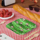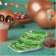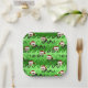 Niedliche Seeotter, die auf den grünen festlichen Wellen mit roten Weihnachtsmannmützen reiten.