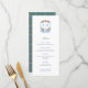 Dieses elegante Rot-Blau-und Grün-Holidays-Menü-Design zeigt meine eigenen Aquarellbilder (das Wappen- und Aquarellbanner). Hier für ein Hochzeitsessen/Probe.