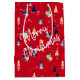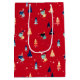 Weihnachtsskifahrer auf roten Schneeflocken Mittlere Geschenktüte