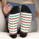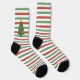Christmassy-Design mit roten und grünen Streifen auf weißem Hintergrund und einem bunten Weihnachtsbaum auf dem Kalb. Ein Kleidungsstück für die Weihnachtszeit oder den Abend beim Schwiegerbesuch.