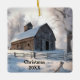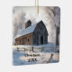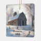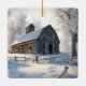Alte Holzhütte und Zaun im Winter mit Schneeflocken