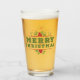 Dieses festliche Weihnachtsfeiertags-Bierglas hat einige Stechpalmenbeeren auf ihm und den Wörtern, "frohe Weihnachten". Es ist von Superkalifragilistic zu kaufen eins, vieler WeihnachtsBargläser, die, verfügbar sind.