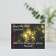 Eine personalisierte Save the Date Hochzeitspostkarte mit einem hübschen, beleuchteten Urlaubstern auf einem Weihnachtsbaum. Ideal für eine Hochzeit im Urlaub. Fügen Sie die Namen der Braut und der Bräuche und das Hochzeitsdatum in das Design, um zu personalisieren.
