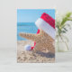 Starfish in Strand Sand mit dem Weihnachtsmann für Ferien Grüße für Geschäftskunden.
