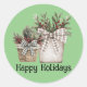 Weihnachtsaufkleber mit festlichen Töpfen und Pflanze mit Schachbrettern.