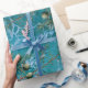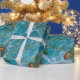 Tief blaue Ozeanwellen im Hintergrund mit Nadelbäumen und Weihnachtsbeeren. Ein wunderschönes Weihnachtsdesign, ideal für Weihnachten im Sommer oder Weihnachten an der Küste.