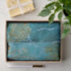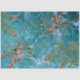 Tief blaue Ozeanwellen im Hintergrund mit Nadelbäumen und Weihnachtsbeeren. Ein wunderschönes Weihnachtsdesign, ideal für Weihnachten im Sommer oder Weihnachten an der Küste.