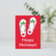 Der tropische Weihnachtsstrand flackert Postkarten. Funny Holiday Karten mit personalisierten Frohen Festtagen Nachricht. Niedliche Hausschuhe mit grünen heiligen Blätter und roten Beeren. Sommersandalen mit Herz und Weihnachtsdekorationen. Kann auch als Party Einladung für Zuhause oder Büro verwendet werden.