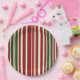 Weihnachtsstreifen-Papier Party-Teller-Ein Allover-Hintergrund Streifen Muster in Feiertagsfarben bedecken die Oberfläche der Platte. Die Streifen sind durch verschiedene Breiten verteilt. Die Hauptfarben sind rot, grün, creme und gold. Es gibt einige dieser Muster von Weihnachten Streifen, die man mischen und zusammenfügen kann. Sie alle koordinieren sich, aber keine zwei Muster sind identisch. Auch die Koordinierung karierter Muster ist möglich. Wählen Sie eine beliebige Zazzle-Teller-Größe aus.
