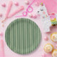 Weihnachtsstreifen-Papier Party-Teller-Ein Allover-Hintergrund Streifen Muster in Feiertagsfarben bedecken die Oberfläche der Platte. Die Streifen sind durch verschiedene Breiten verteilt. Die Hauptfarben sind rot, grün, creme und gold. Es gibt einige dieser Muster von Weihnachten Streifen, die man mischen und zusammenfügen kann. Sie alle koordinieren sich, aber keine zwei Muster sind identisch. Auch die Koordinierung karierter Muster ist möglich. Wählen Sie eine beliebige Zazzle-Teller-Größe aus.