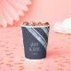Als Teil eines koordinierenden Set für Weihnachten bietet dieser Papierbecher diagonale Streifen mit einem Outdoorsy-Thema in Himmelblau, Marine und Weiß. Optional können Sie den Text 'Happy Holidays' und eine Vorlage zum Hinzufügen Ihres Namens und/oder eines anderen Textes verwenden. Suchen Sie ID861 durch ID864, um weitere Farboptionen und andere Produkte in diesem modernen, weihnachtlichen Design-Set zu sehen.
