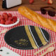 Diese Papiertafel ist Teil eines koordinierenden Set für Weihnachten und weist diagonale Streifen in den Farbtönen Gold, Schwarz und Weiß auf. Optional ist der Text 'Happy Holidays' und eine Vorlage zum Hinzufügen Ihres Namens und/oder eines anderen Textes verfügbar. Suchen Sie ID861 durch ID864, um weitere Farboptionen und andere Produkte in diesem modernen, weihnachtlichen Design-Set zu sehen.
