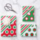 Weihnachtsstreifen & Punkte - Rotes grünes Weihnac Geschenkpapier Set