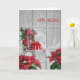 Weihnachtsstuhl mit Poinsettia im Fenster Karte