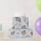 Das festliche Urlaubsmuster zeichnet sich durch illustrierte, knuddelige Weihnachtszwerge in den Rollstühlen, auf den Fahrrädern und durch das Tragen von Geschenktürmen aus. Hinzu kommen heilig-weiße Poinsettien auf hellgrauem Hintergrund