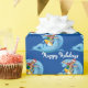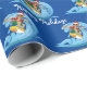 Happy Holidays surfen mit einem Santa Claus Kappe und surfen auf einer blauen Welle mit Wasserspritze. Die Hintergrundfarbe kann geändert werden.